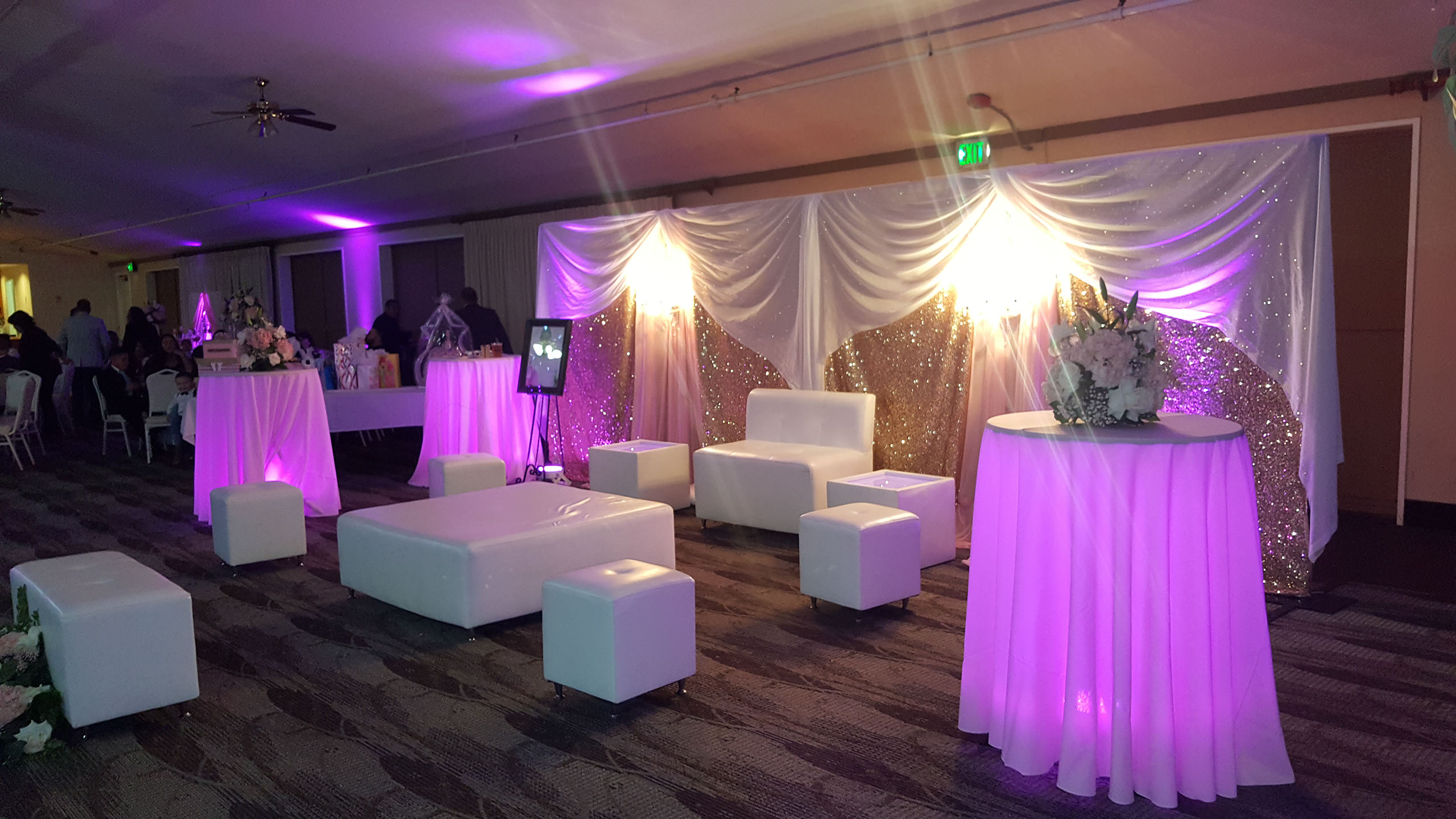 Custom Monograms, Video & Projection, Sound Reinforcement, CO2 Canons, Party Favors, Dancing Robots, Furniture, etc