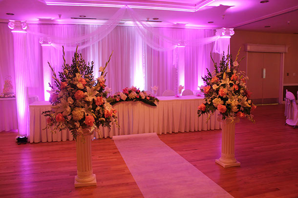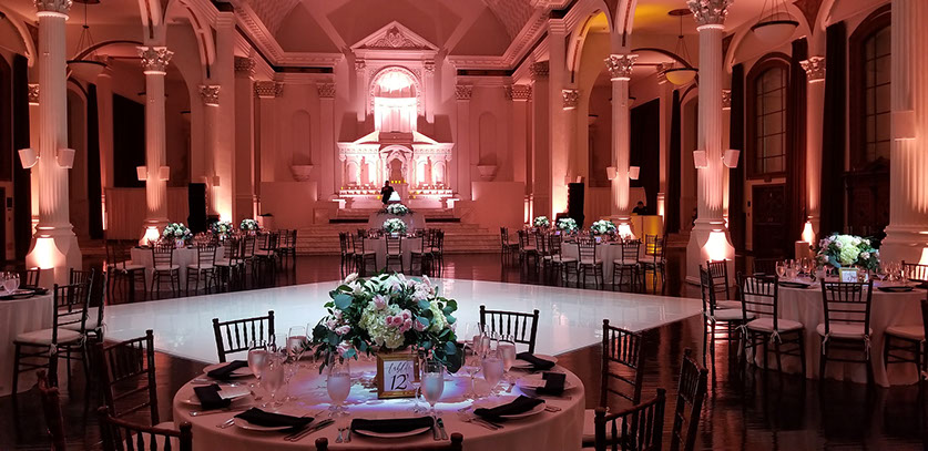 Correctly adding lighting to your event location can have a large impact and give your event location that “wow” as your first guest start to arrive.